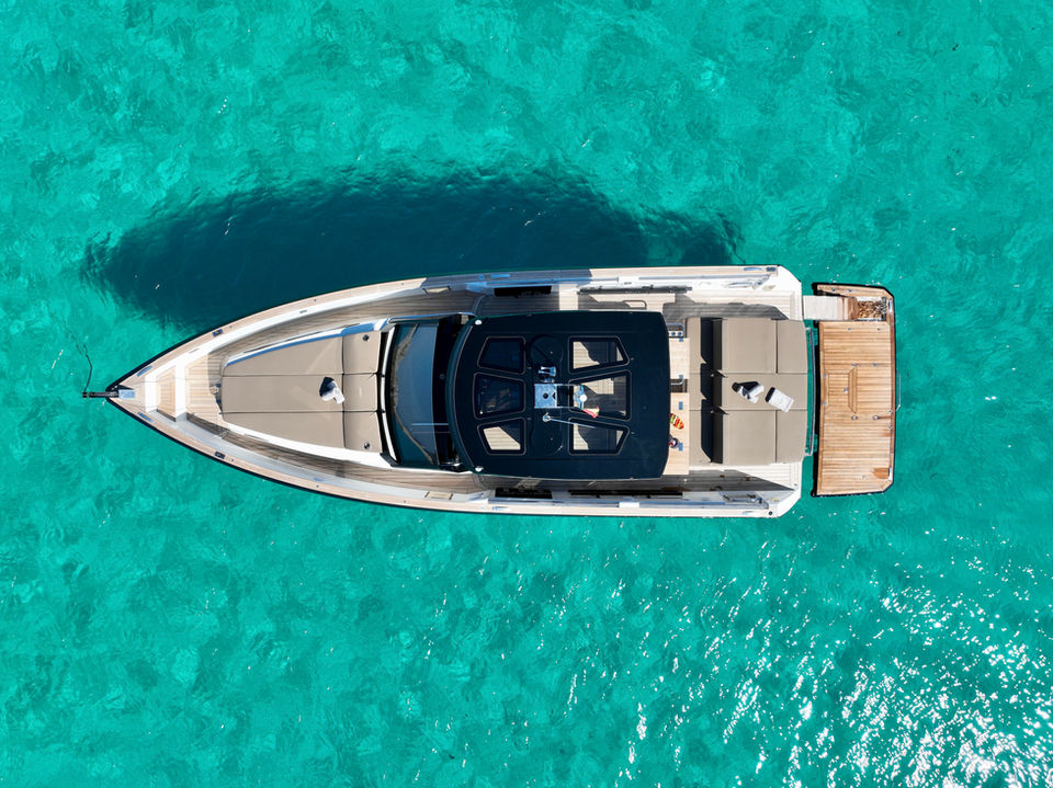 Step aboard the Fjord F44 MiniPico IV, the quintessence of luxury and style, making it a prime choice for boat hire in Santa Eulalia, Ibiza. As you glide along the stunning waters of Ibiza and Formentera, this elegant yacht offers more than just a ride; it promises an unforgettable adventure. Its spacious deck is perfect for basking in the Mediterranean sun, providing ample space for you and your guests to relax and enjoy the sweeping vistas.